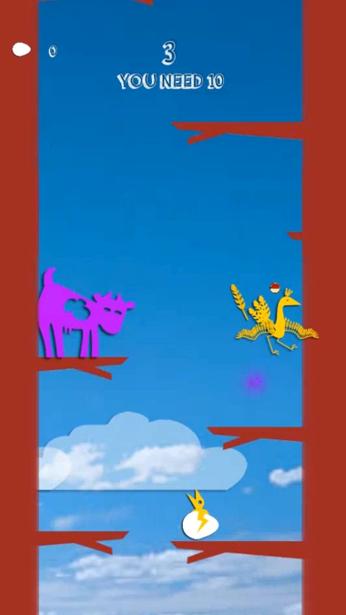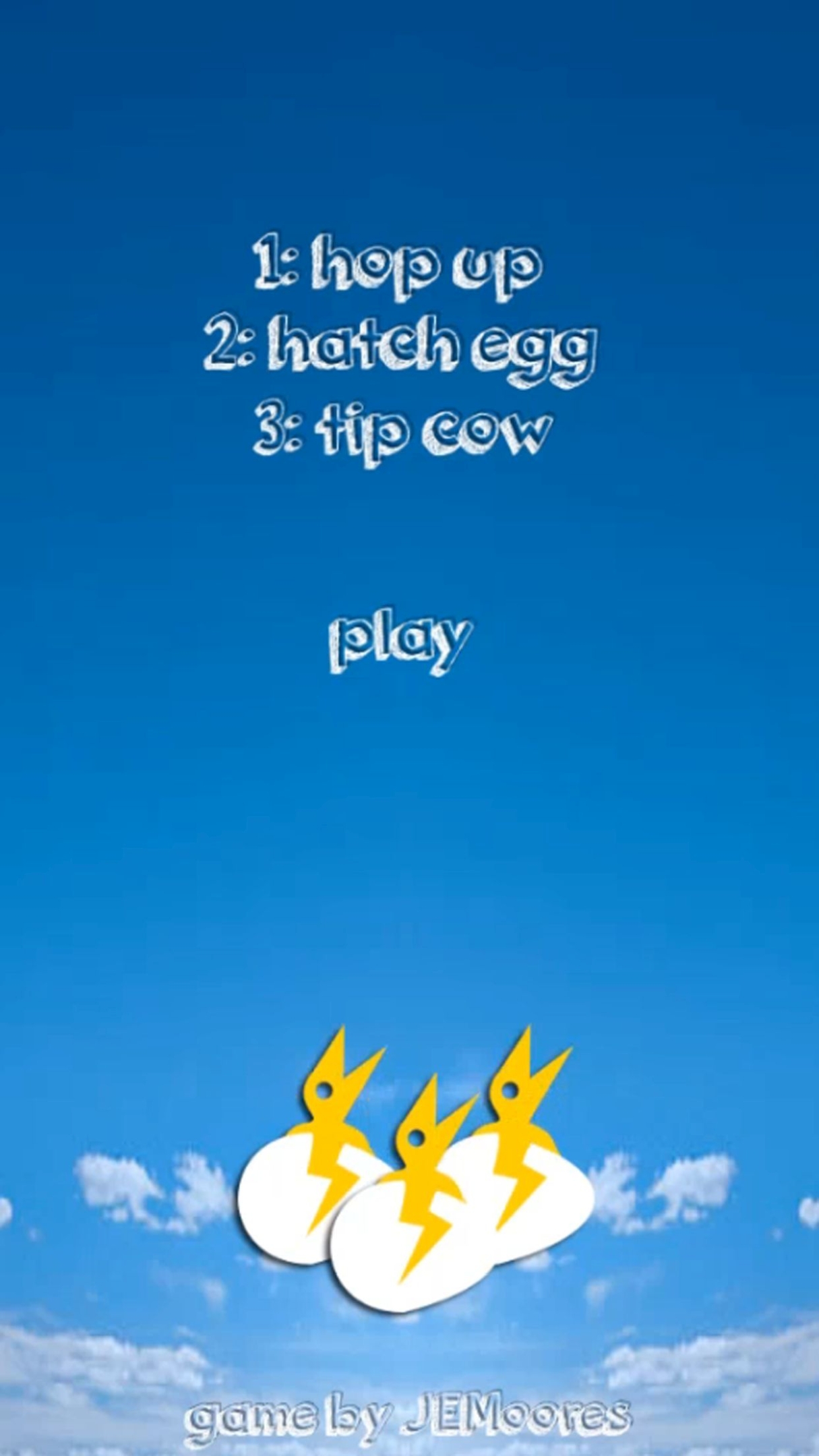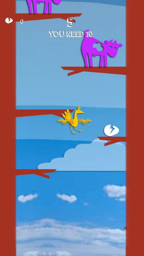 Use your arrow keys to move Mama Bird left and right and the space bar to hop or fly. Each egg you hatch gives you 5 seconds to tip cows out of the way. Hop up, hatch egg, tip cow. It’s that easy. Hatch enough small eggs and you win a big egg. Trade big eggs for colorful bird upgrades.